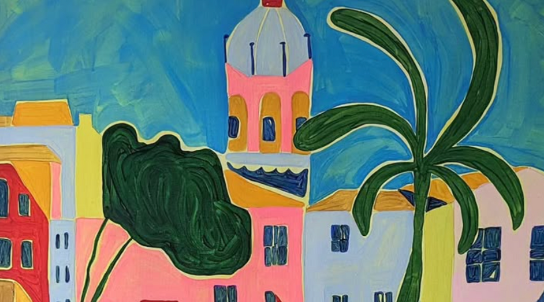 Beth blends architectural detail with playful still-life which results in dreamlike spaces you can imagine walking through. Her use of vibrant colour and structure makes her work feel both familiar and imaginative. We find the longer we look at Beth’s artwork, the more small details we notice.