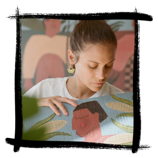 "I was born to a Paraguayan mother and a French father and raised across different countries. I began painting in January 2025 after working as a photographer for many years. Painting felt like a natural shift rather than a new start, as my photography background shaped my approach to composition and colour combinations. With no formal training in painting or drawing, I learned through practice and experimentation. I began playing with texture and using sanding pads left around the house by my partner, a carpenter, often damaging the surface to reveal texture. I liked the result and kept it. I also love using scrap wood, as it aligns with my main subjects, ecological issues, connecting material and message."