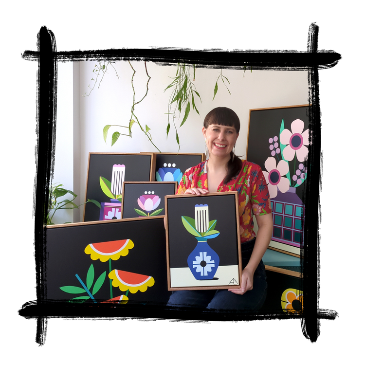 I'm a Melbourne based artist who creates colourful, crisp, original paintings. With a nostalgic, retro feel, the intention of my work is to bring joy and happiness to any space. With a background in floristry and jewellery design, my work is illustrative with a focus on florals and patterns. Super sharp lines make my work satisfying to create and keep my OCD tendencies at bay.