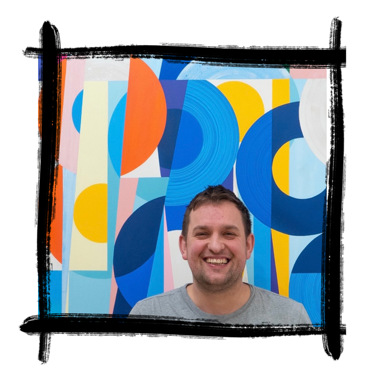 "My art is colourful and abstract! About half of my work consists of murals, public art and commissions, which I generally pre-design digitally, and often require a lot of sign off from other people so I like the work that I make in my studio to be as carefree as possible. My favorite way to paint is to just start with a random shape or colour, then build on it layer by layer. This leaves room for error, and therefore learning! I like to think of this side of my practice as one ever evolving experiment, which I’ll never be done with!My proudest moment as an artist was in 2022. I won a commission from the mayor of London, to paint a 200sqm multi story carpark in Wood Green. I grew up just up the road from it, and I’m raising my kids just round the corner now."