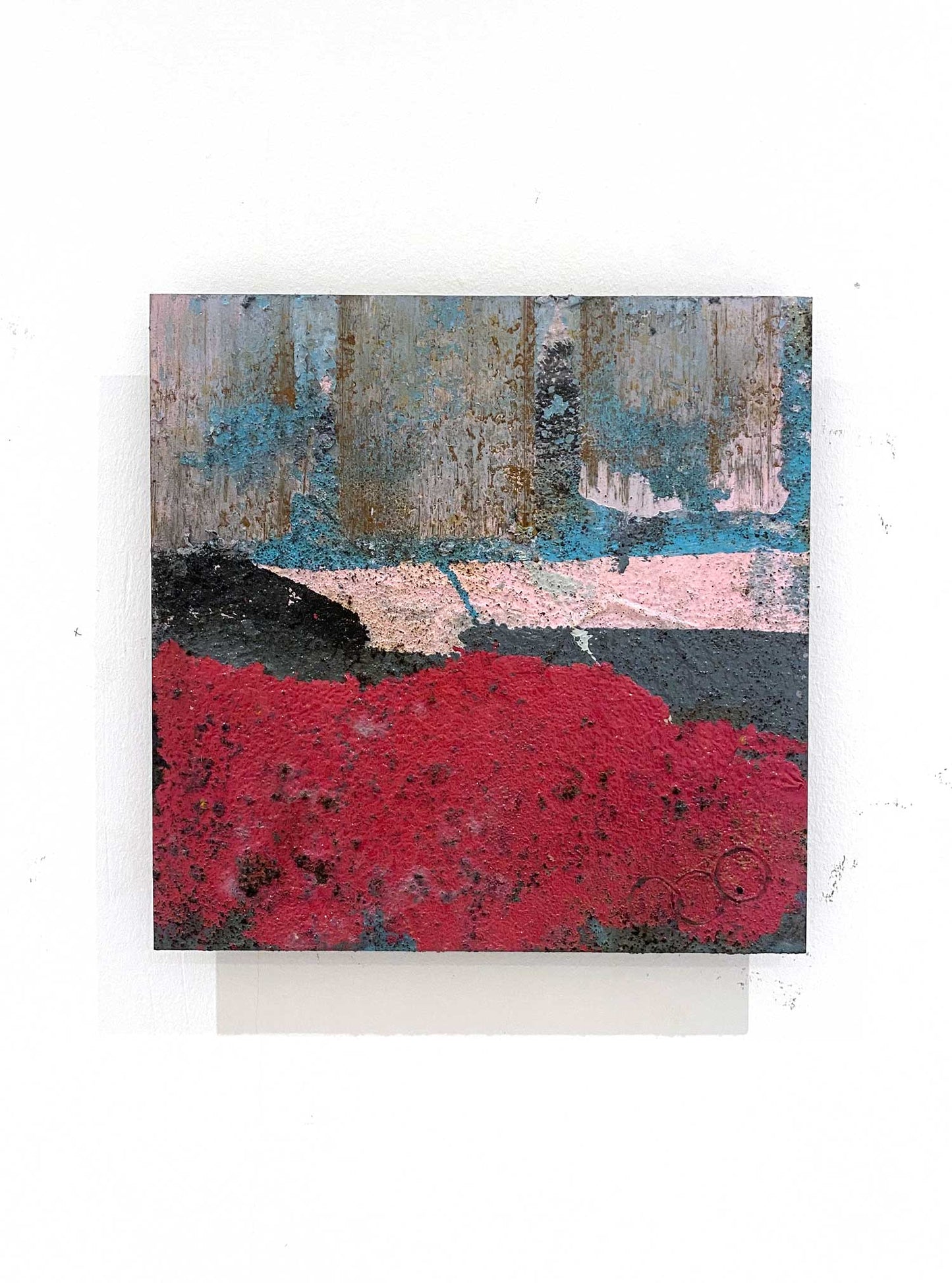 This square piece is the perfect abstract art to create a focal point in any space or become an addition to a gallery wall. The dominance of red with elements of pink, blue and grey hues will bring a touch of warmth and texture to any room.