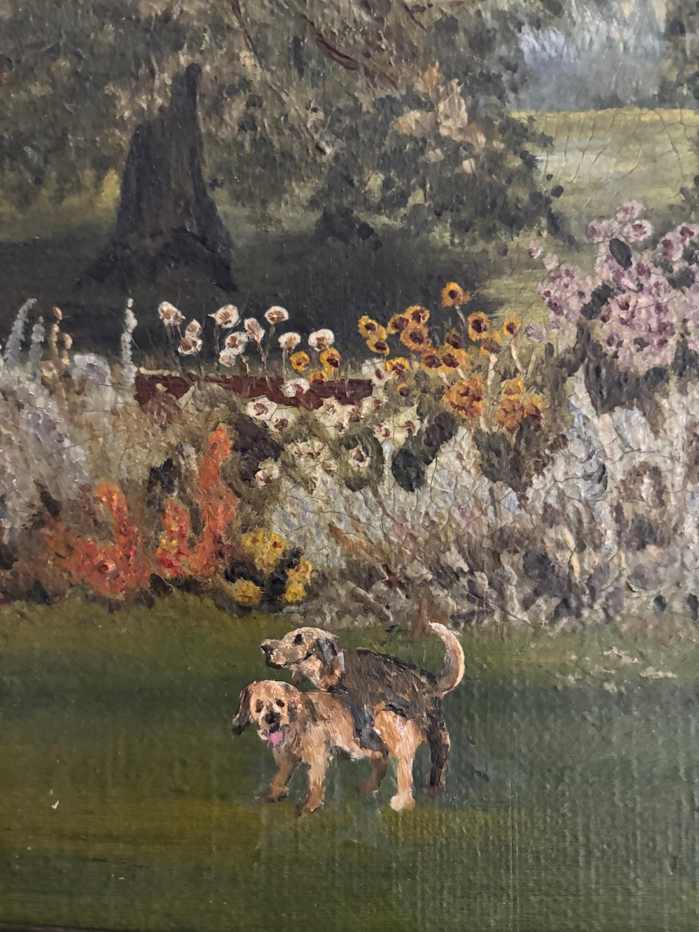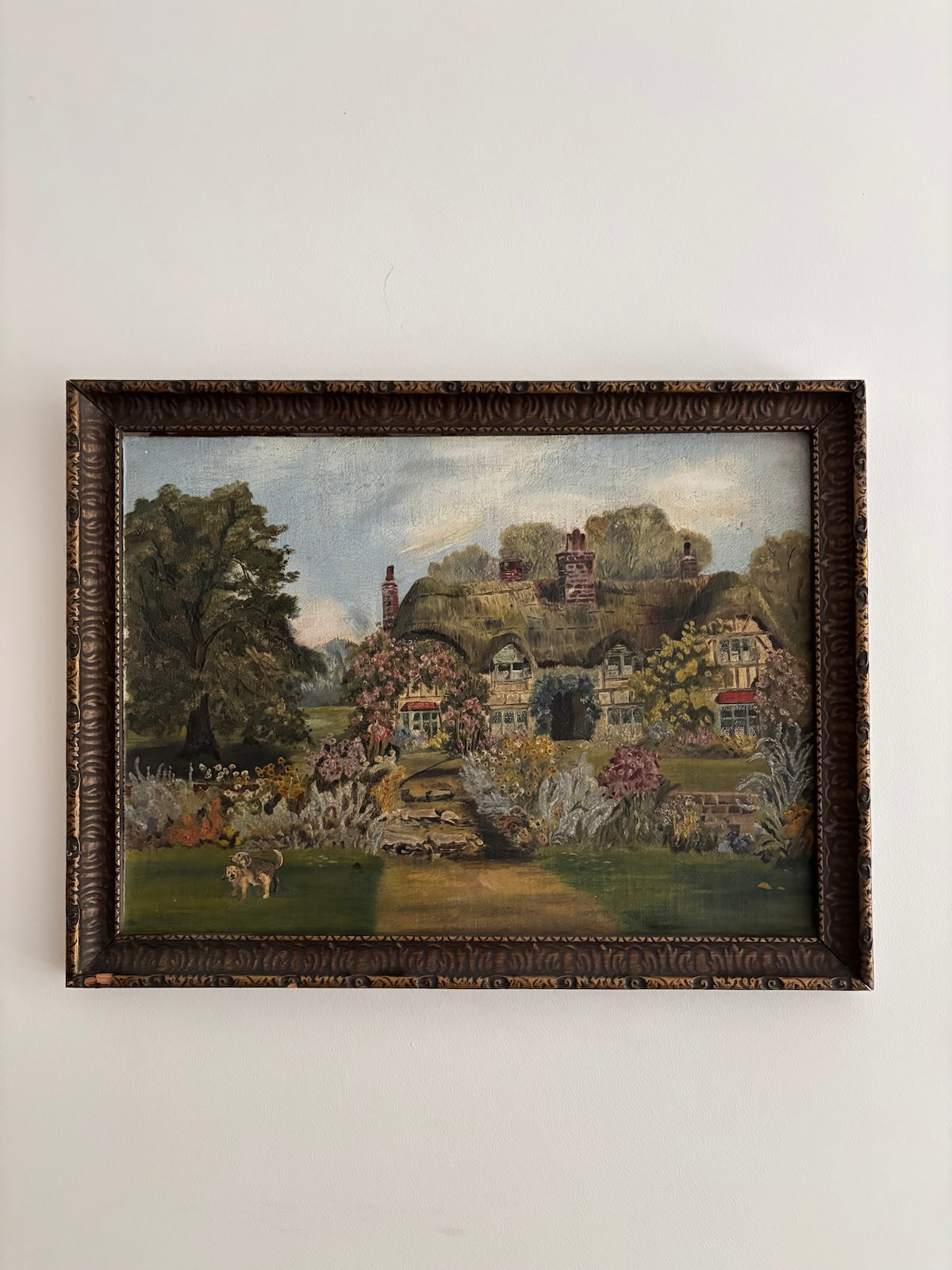 I paint over these to bring something new to the scene - in this charming depiction of a cottage I added some cute dogs, having a really nice time.