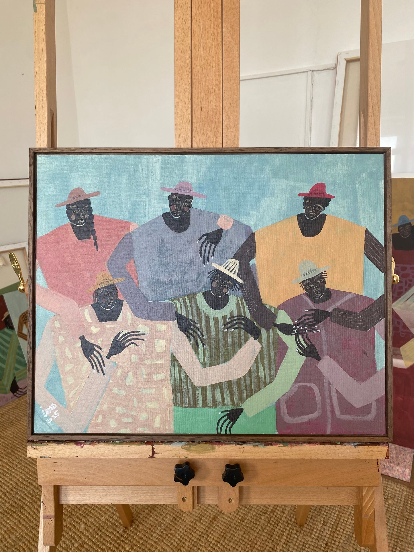 Notes on the Artwork: An original artwork which depicts a group of friends having a conversation. Beautiful colours complement each other in this piece and are sure to make a statement in your living space.