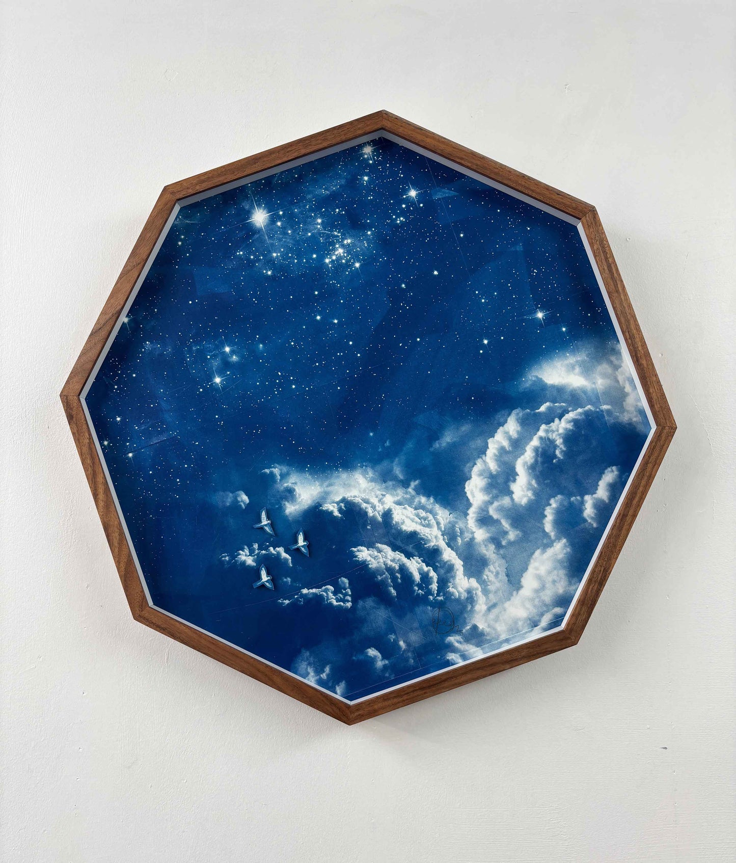Notes on the artwork: The cyanotype process is a photographic technique that produces blue-toned prints. It was first developed in the 19th century by Sir John Herschel, an English scientist, and is known for its distinct cyan-blue coloration.