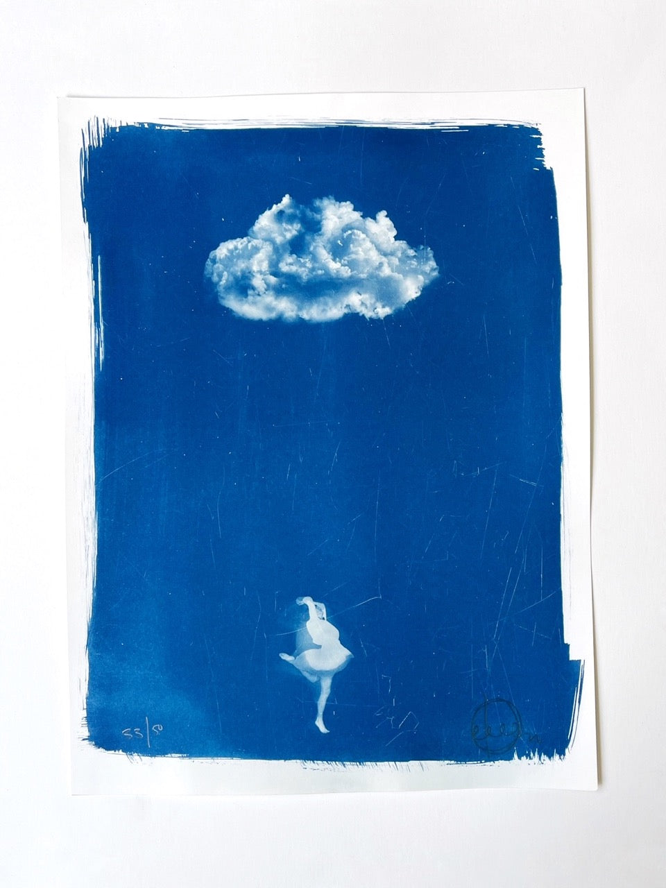 The cyanotype process is a photographic printing technique that produces blue-toned prints. It was first developed in the 19th century by Sir John Herschel, an English scientist, and is known for its distinct cyan-blue coloration.