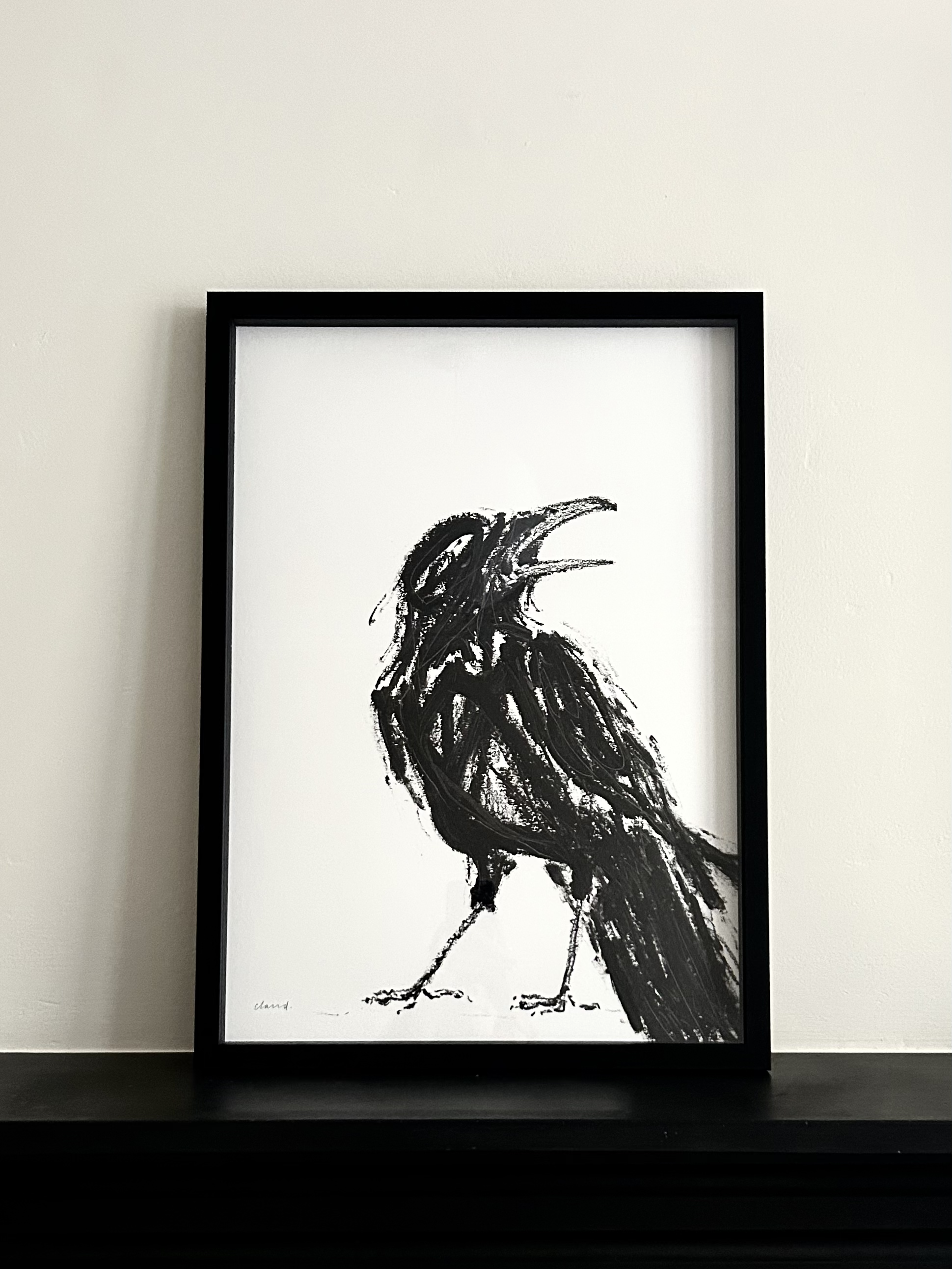 Notes on the Artwork: Part of an ongoing series of crow studies. The series explores the behaviours and personalities of the humble crow, a bird which is so familiar to all of us but often unnoticed. The medium of oil stick is textured, leaving a tactile surface and capturing the movement and feathers of each bird. It would look excellent as a feature piece or alongside another of Claud's work found here.