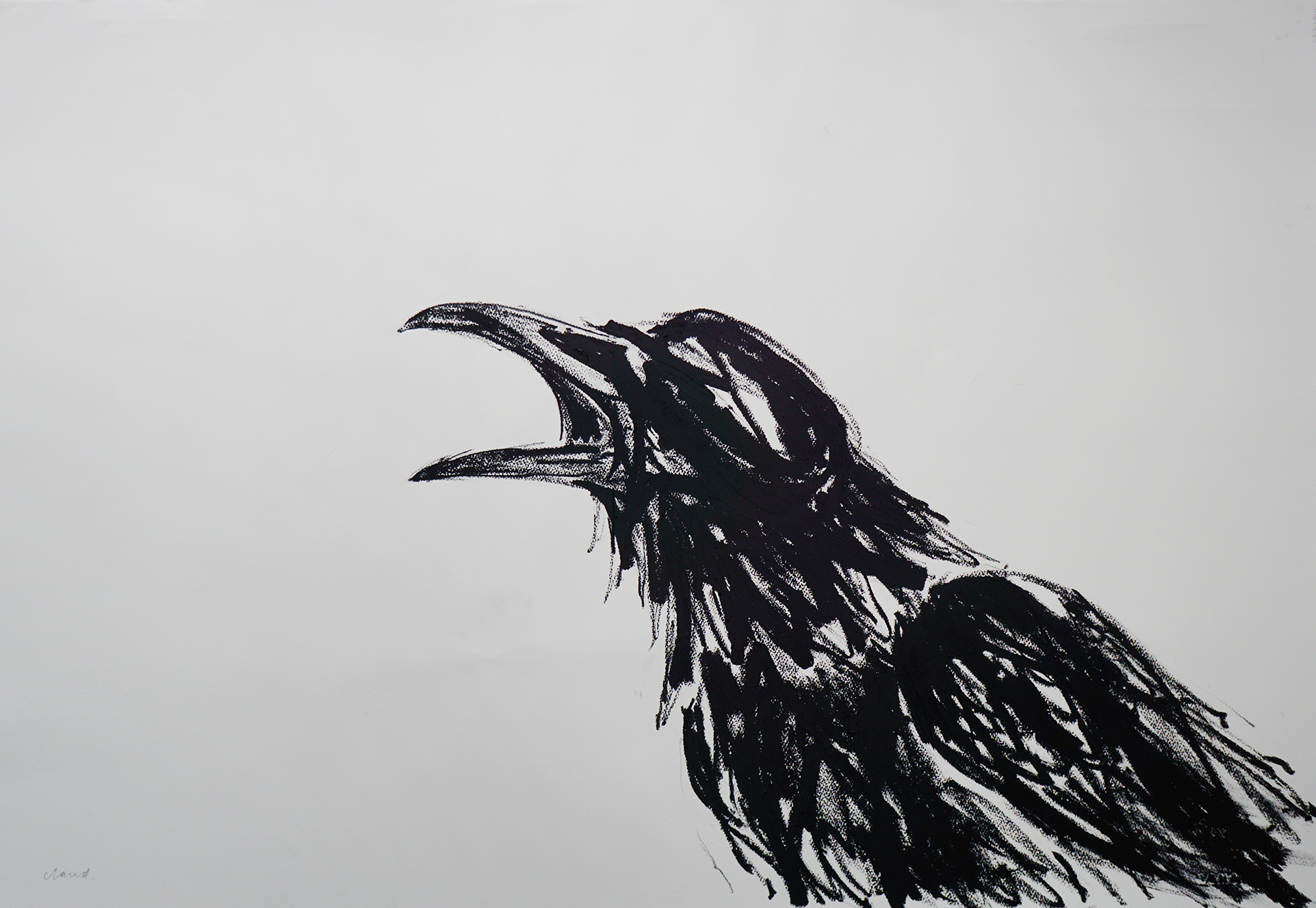 Notes on the Artwork: Part of an ongoing series of crow studies, this is one of the largest scale drawings in the collection. The series studies the behaviours and personalities of the humble crow, a bird which is so familiar to all of us but often unnoticed. The medium of oil stick is textured, leaving a tactile surface and capturing the movement and feathers of each bird. It would look excellent as a feature piece. See more of Claud's work here.