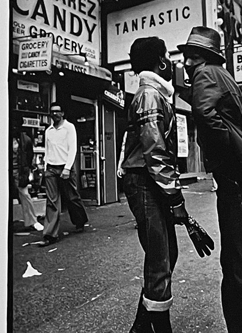 Notes on the Artwork: A street photograph made by Peter in 1980 whilst in New York. Created to fit the theme of 'Dialogues' for the RA Summer Show, 2025. This image depicts dialogues between the subjects ,photographer and location
