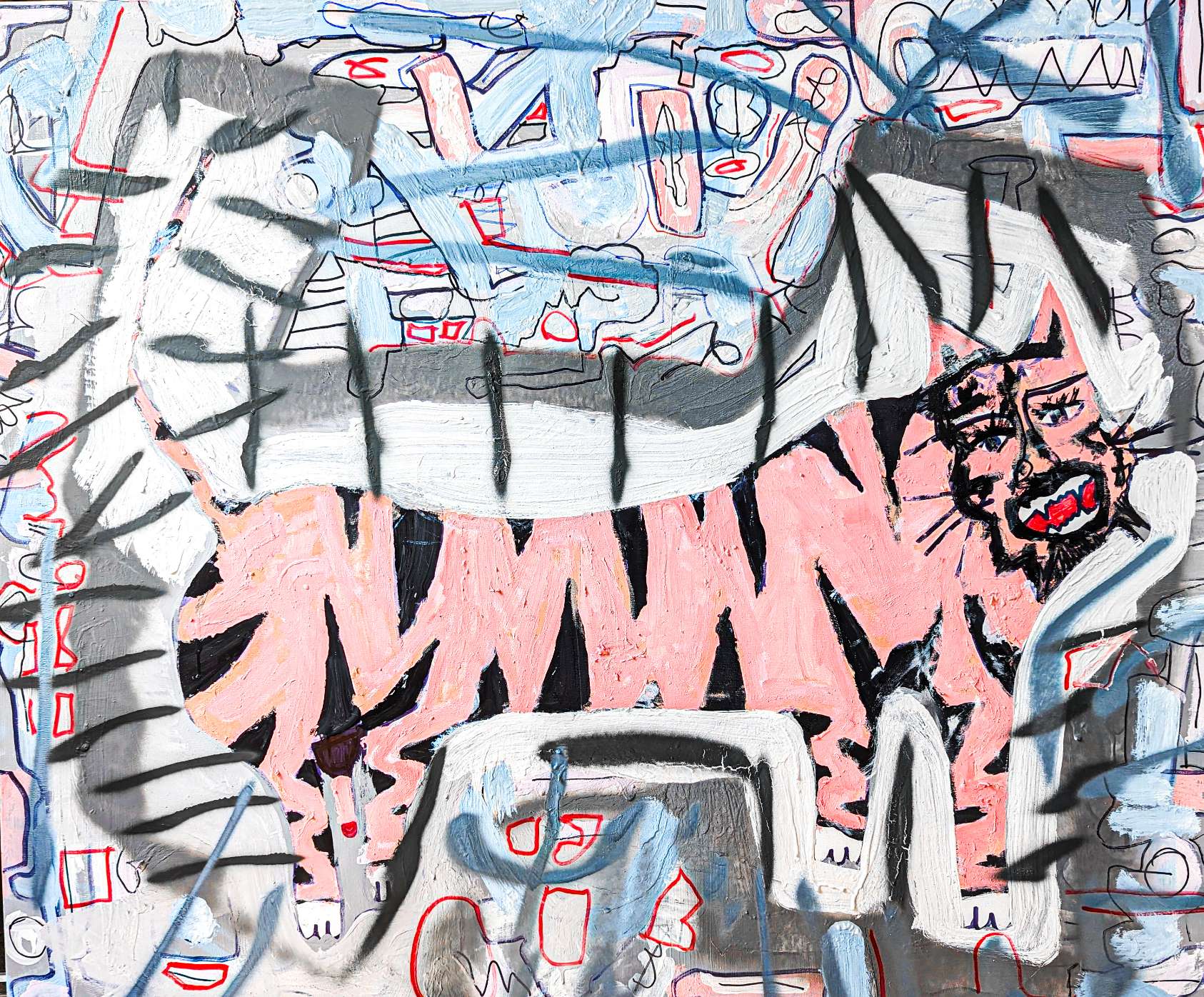 Notes on the Artwork: Expressive abstract painting that blends elements of street art and naive art
