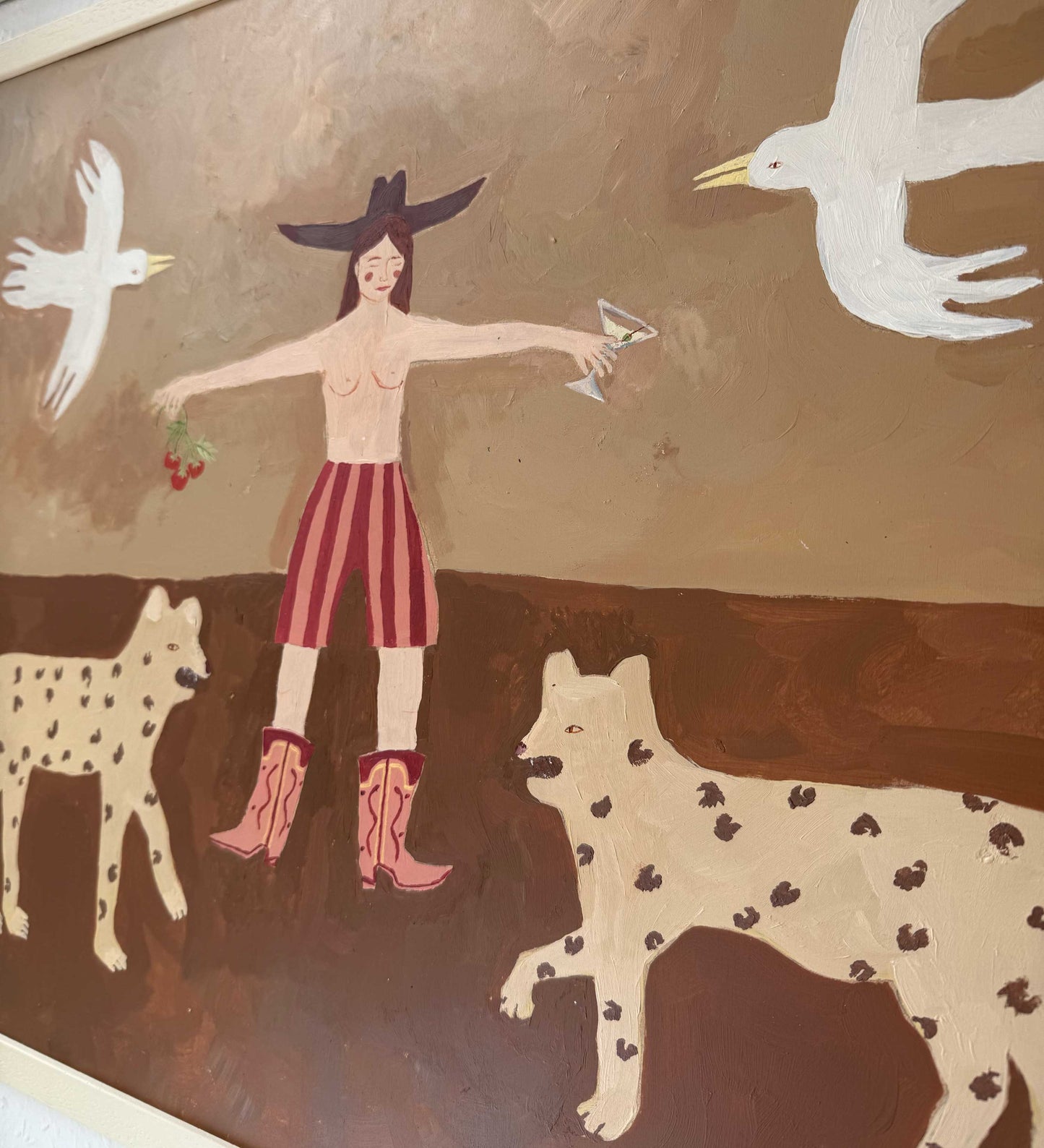 Notes on the artwork: Ideal for living rooms, home bars, or creative spaces, Dancing with Leopards serves as a joyful focal point. Its inviting composition and playful elegance create an immediate sense of character, making it the perfect addition to modern and eclectic interiors alike.